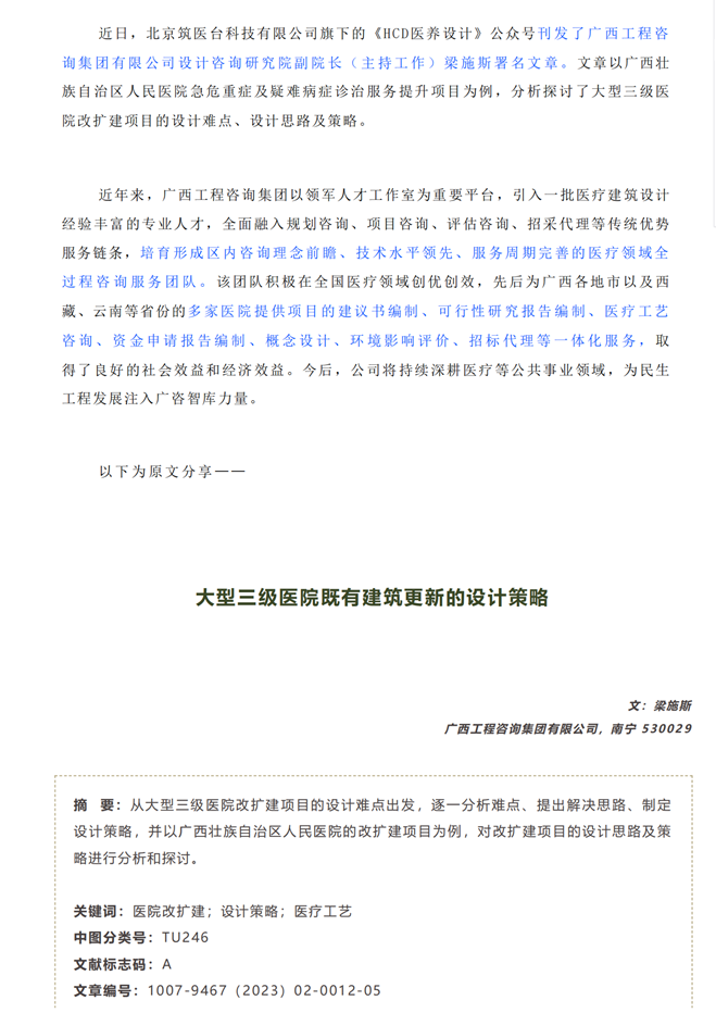 廣咨智庫丨大型三級醫院既有建筑更新的設計策略