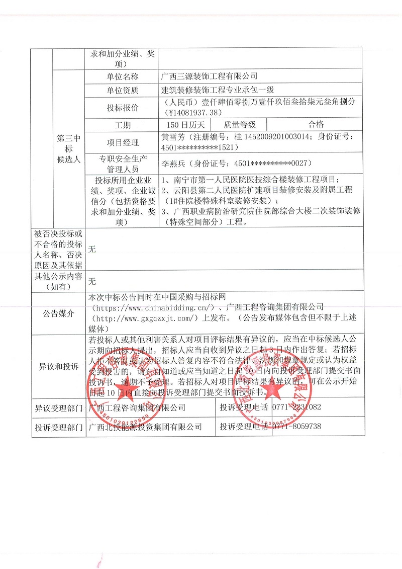 廣西能源大廈辦公場所裝修工程(12、19、20樓)施工招標中標候選人公示