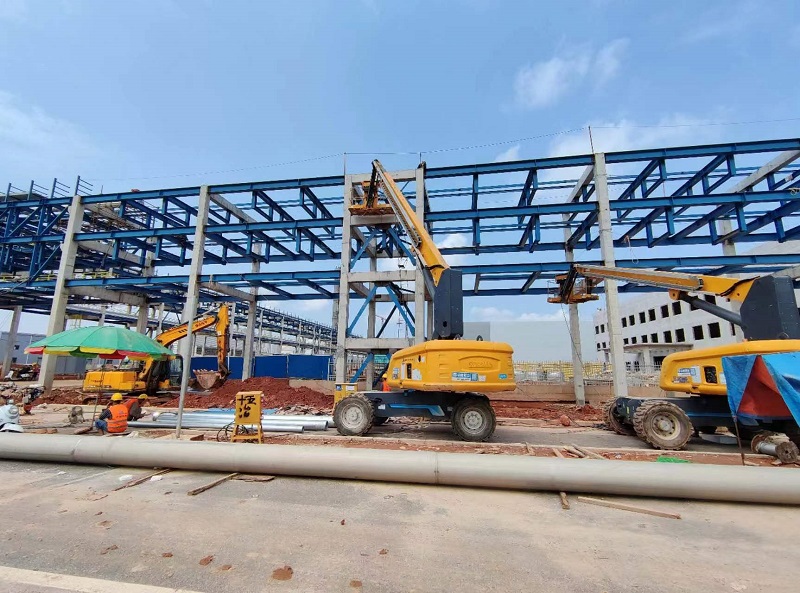 融融春光至,施工建設(shè)忙。地處玉林市、北海市、廣東省湛江市交匯處的龍?zhí)懂a(chǎn)業(yè)園內(nèi),道路施工車輛來回穿梭,管廊鋼結(jié)構(gòu)焊接處火花飛濺,到處是一片繁忙的景象。
