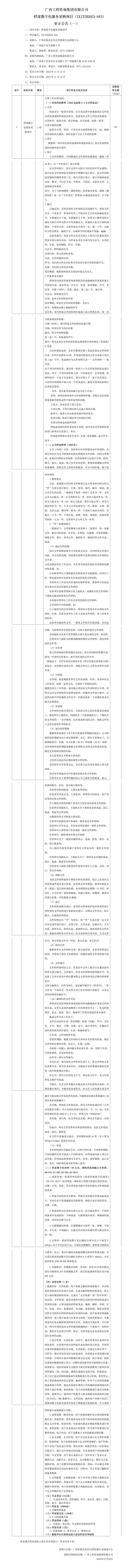 廣西工程咨詢集團有限公司檔案數字化服務采購項目(ZXJTZB2023-043) 更正公告(一)