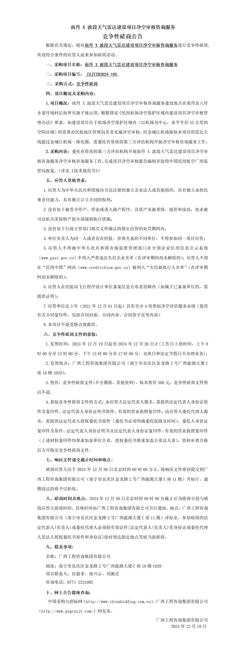 南丹 X 波段天氣雷達建設項目凈空審核咨詢服務競爭性磋商公告